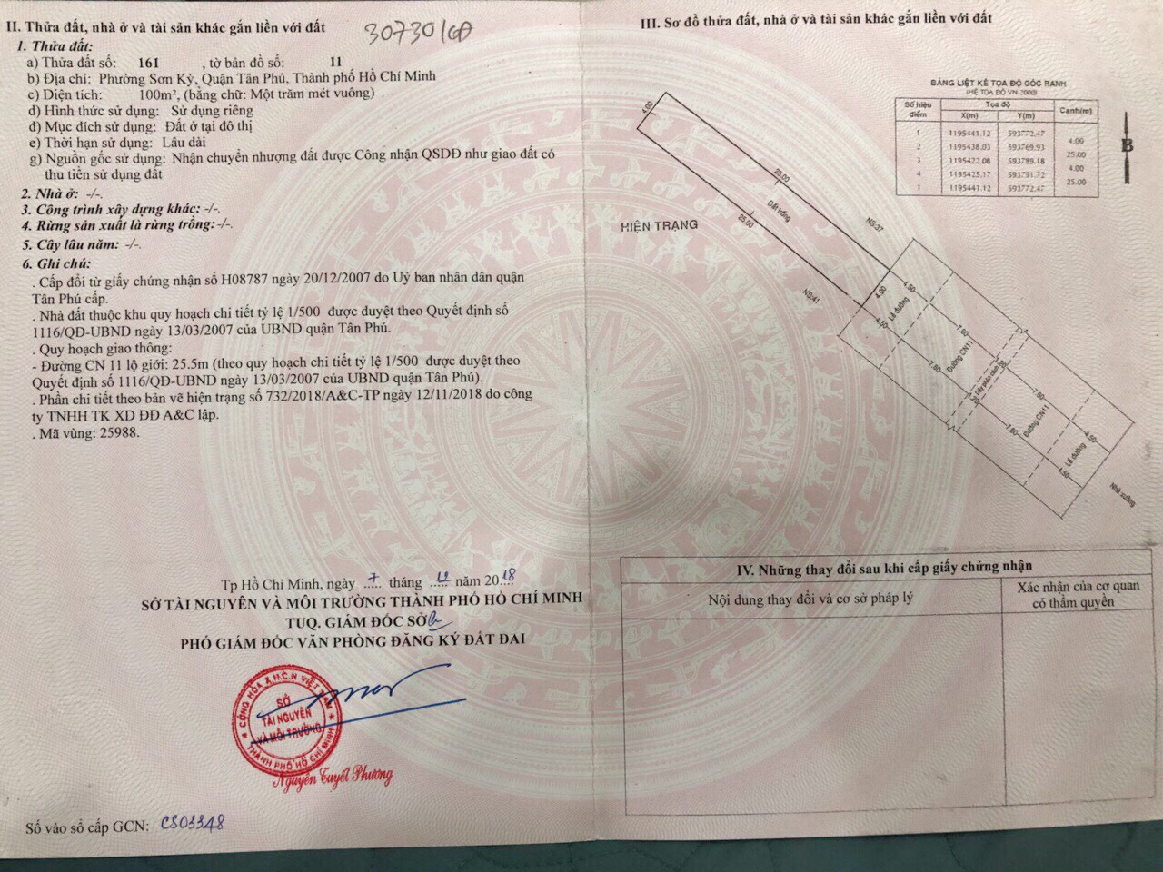 Nhà Mặt Tiền đường 30m CN11, P. Sơn Kỳ, Tân Phú - 4x25m