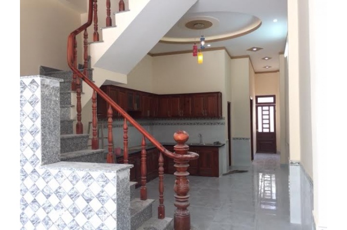 Nhà 1 trệt 1 lầu, có 2 phòng ngủ, 1 phòng có lắp điều hòa. Toilet có trang bị sẵn máy nóng lạnh. Đường ô bàn cờ thông ra các đường lớn