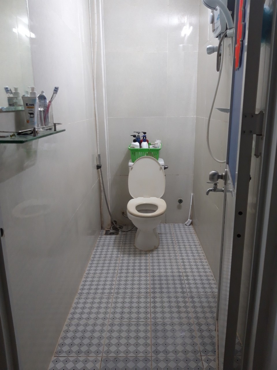 Nhà 1 trệt 1 lầu, có 2 phòng ngủ, 1 phòng có lắp điều hòa. Toilet có trang bị sẵn máy nóng lạnh. Đường ô bàn cờ thông ra các đường lớn